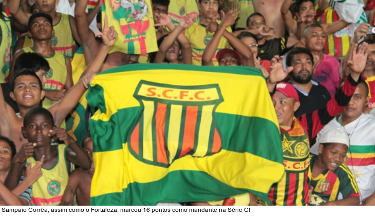 Mas a campanha não Fortaleza em casa não é a única de encher os olhos. O Sampaio Corrêa também tem desempenho louvável na Série C e, em grande parte, por causa da pontuação caseira. São 16 pontos dos 23 conquistados. Só o Luverdense escapou do caldeirão maranhense ao empatar, por 1 a 1. O Sampaio Corrêa está na vice-liderança do Grupo A com 23 pontos, 15 gols de saldo e aproveitamento de 63,9%.