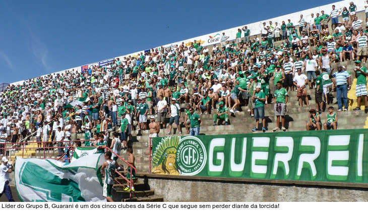 O Bugre, aliás, é o 5º clube invicto como mandante. Na verdade, o Guarani ainda não foi derrotado na Série C - cinco vitórias e seis empates ao longo dos 11 jogos. No Estádio Brinco de Ouro da Princesa, em Campinas, o clube paulista obteve 11 pontos. O Guarani lidera o Grupo B com 21 pontos e aproveitamento de 63,6%.