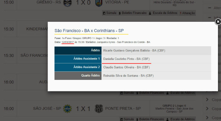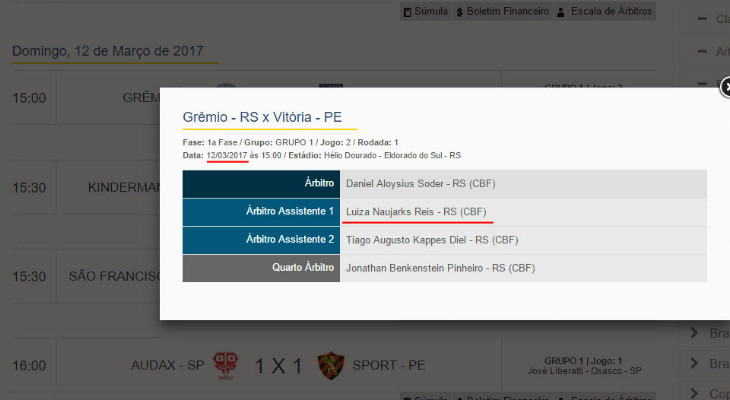 A assistente Andréa Izaura Mafra Marcelino, por exemplo, esteve na vitória do Nova Iguaçu, por 2 a 1, sobre o Bangu no Estádio Laranjão, no último sábado, pela 1ª rodada da Taça Rio no Campeonato Carioca. A partida, segundo a súmula oficial, começou às 15h30 e foi encerrada às 17h24. Menos de 24 horas depois, ela já estava novamente em campo.Agora, pela 1ª rodada do Brasileirão Feminino. Andréa Izaura Mafra Marcelino trabalhou no empate, por 1 a 1, entre São José e Ponte Preta no Estádio Martins Pereira, em São José dos Campos. De Nova Iguaçu para São José dos Campos são 309 km e três horas e 45 minutos. O Sr. Goool também entrou em contato com a Federação de Futebol do Estado do Rio de Janeiro (FERJ) e com a Sindicato dos Árbitros Profissionais do Estado do Rio de Janeiro (SAPERJ), mas não obteve respostas.