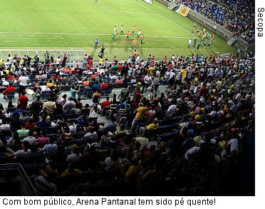 Mato Grosso - Nada de Elefante Branco. E, sim, Caldeirão Pantanal! Palco da Copa do Mundo, o estádio mato-grossense tem arrastado bom público em competições nacionais e, até aqui, mostra que é pé quente com os clubes do Estado. Em seis jogos na Arena Pantanal, nenhum clube mato-grossense foi derrotado, como mostrará o levantamento do Sr. Goool nesta quarta-feira.