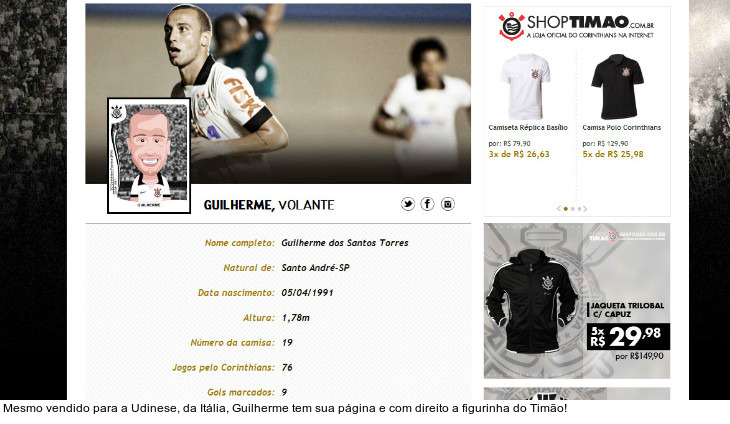 O volante Guilherme segue entre os jogadores do elenco. O ex-jogador da Portuguesa foi vendido para a Udinese, da Itália, por 4 milhões de euros (R$ 13 milhões). Como detém 30% dos direitos econômicos do jogador, o Timão irá embolsar cerca de R$ 3,7 milhões. Mesmo vendido, Guilherme segue ao lado dos companheiros no espaço reservado ao elenco.