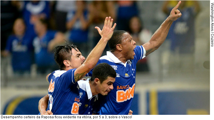 O desempenho certeiro da Raposa ficou evidente na vitória, por 5 a 3, sobre o Vasco. O clube mineiro já havia feito cinco gols em uma mesma partida em outras duas oportunidades. O Cruzeiro goleou Goiás (5 a 0) e Vitória (5 a 1). Já o triunfo sobre o rival Atlético Mineiro foi por 4 a 1.