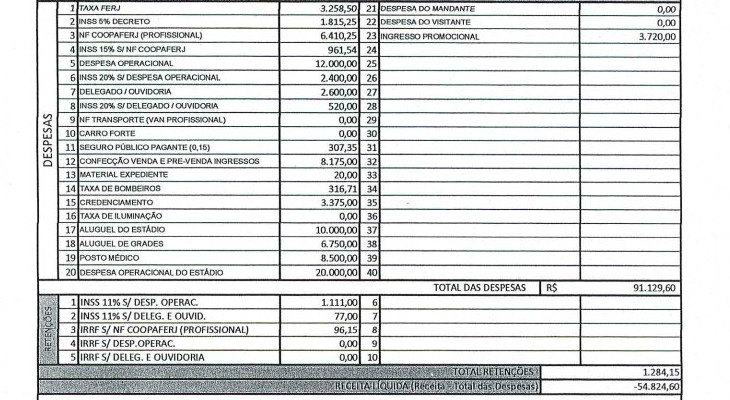 Leia a notícia completaSem falar que a FERJ turbina os borderôs com as cotas de TV. É mais uma artimanha para o boletim financeiro sair azul e, não, vermelho. Todas estas malandragens foram reveladas pelo Sr. Goool nos últimos anos. Em 2016, a FERJ foi além e criou dois novos itens, "bônus" e "prêmio".