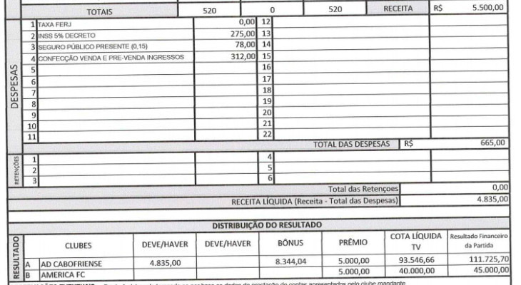 No Estadual, a FERJ embolsou entre 8% e 9% da taxa dos mandantes. A Federação, aliás, poupou os chamados pequenos, mas só aqueles que enfrentaram clubes também pequenos. O Volta Redonda, por exemplo, enfrentou o Fluminense e pagou à FERJ a bagatela de R$ 4.210,00 ou 9,7% da renda bruta. O montante da FERJ ainda teve as colaborações de Vasco (R$ 21.915,00), Flamengo (R$ 15.504,00) e Bangu, adversário do Botafogo (R$ 3.258,50).
