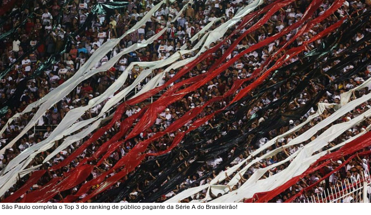 Em quatro partidas como mandante, o Fluminense ostenta média de 29.250 pagantes e público total de 116.998 torcedores. Na vitória sobre o São Paulo, por 5 a 2, o clube das Laranjeiras contou com a presença de 15.125 apaixonados. Público razoável e bem modesto em relação ao maior da Série A. Na derrota para o Vitória, o próprio Fluminense levou 44.975 pagantes ao Maraca - o maior da elite.O Corinthians, por sua vez, tem os dois outros maiores públicos do Brasileirão. No triunfo sobre o Flamengo, no Pacaembu, foram 36.402 fieis, contra 36.123 pagantes na derrota para o Figueirense na Arena Corinthians. O Timão ocupa a vice-liderança no ranking com média de 28.554 torcedores. O público total do clube paulista, após três jogos em casa, é de 85.662 pagantes.
