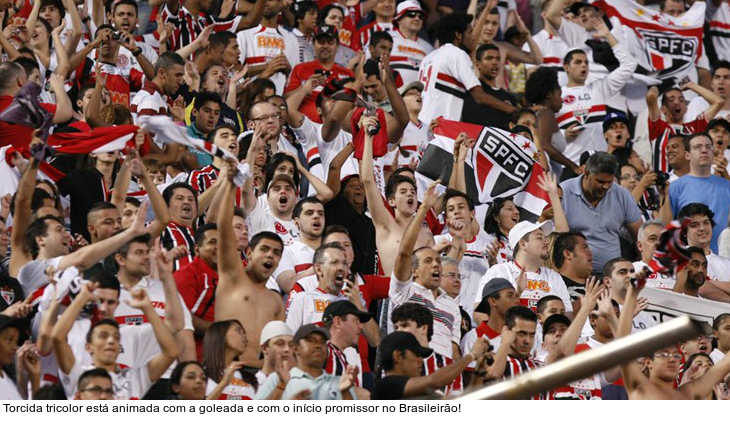 São Paulo - O São Paulo chegou aos seis pontos e à liderança do Campeonato Brasileiro ao golear o Vasco, por 5 a 1, no Estádio do Morumbi, na última quarta-feira, pela 2ª rodada. O torcedor tricolor que andava meio cabisbaixo por causa das eliminações no Paulistão e Libertadores, voltou a se animar.