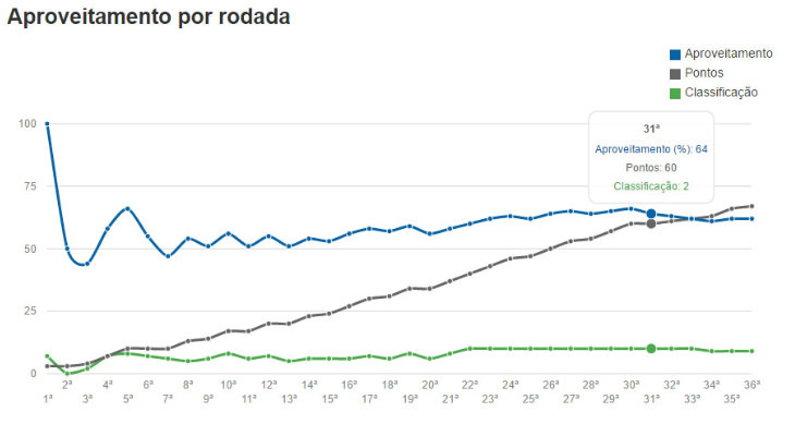 Até a estreia do Flamengo no Maracanã, na 32ª rodada, o clube carioca estava na vice-liderança a quatro pontos do Palmeiras (64 a 60). O empate contra o Corinthians até gerou o segundo melhor público rubro-negro no Brasileirão (54.250), mas fez o líder abrir seis pontos de vantagem. O cenário se repetiu nos dois outros jogos no palco da final da Copa do Mundo.O empate sem gols ante o Botafogo no mesmo Maraca derrubou o Flamengo para o 3º lugar com 63 pontos, sete a menos do que o Palmeiras. O Santos ainda superou os cariocas ao chegar aos 64 pontos. Nas arquibancadas, o público voltou a marcar presença (44.388). O mesmo aconteceu no último domingo (35.066). Mas o empate ante o Coxa eliminou de vez o Flamengo da briga pelo título.