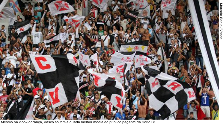 Cenário bem diferente foi visto em 2009. Naquela oportunidade, o Vasco foi campeão da Série B e conquistou o acesso para a Série A com a melhor média de público. Em 19 partidas como mandante, o Gigante da Colina fechou com média de 25.732 pagantes, a quarta maior entre os clubes das Séries A, B, C e D do Brasileirão.