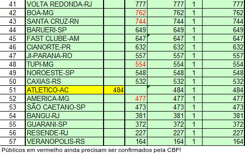 O Santos também deixou a desejar na classificação sobre o Flamengo, do Piauí. Mesmo com a terceira melhor média de público do Paulistão (10.959), o Peixe só levou 8.732 pagantes para a decisão na Vila Belmiro. O Joinville, que disputará a Série B, encostou nos paulistas com média de 8.439 pagantes. Logo atrás vem o Criciúma, novo integrante da Série A, com média de 8.141 pagantes (número ainda precisa ser confirmado pela CBF).