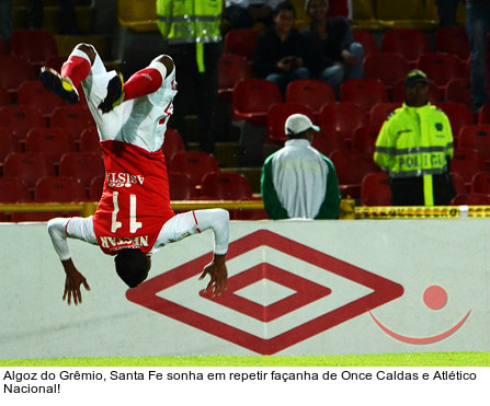 Leia a notícia completaNa atual temporada, porém, já foram dez jogos. Na Segunda Fase, o Santa Fe se garantiu na liderança do Grupo 6, com quatro vitórias e dois empates. A vítima das oitavas-de-final foi o Grêmio. É verdade que o Tricolor gaúcho acabou com a invencibilidade do rival, mas perdeu a vaga por causa do gol fora de casa. O Grêmio venceu, em Porto Alegre, por 2 a 1, mas perdeu na Colômbia, por 1 a 0.