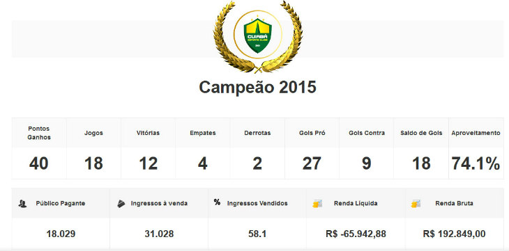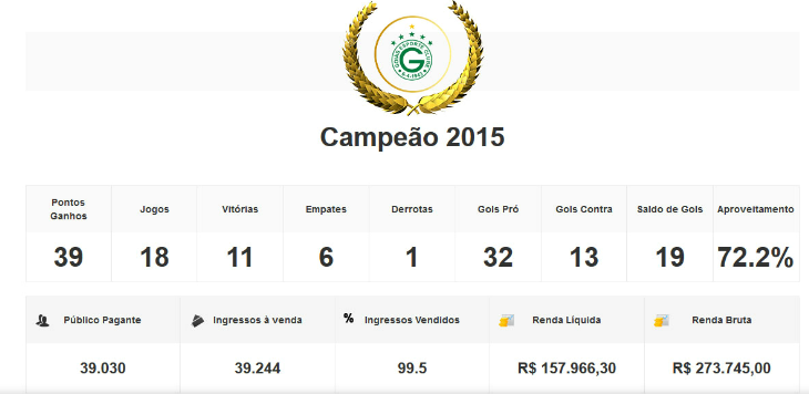 Distrito Federal - O Centro-Oeste, após o Norte, é a segunda região a ganhar destaque no Sr. Goool. Nesta semana, o Sr. Goool trará, em imagens, as campanhas de todos os campeões estaduais separados por região. O histórico revela a pontuação, a quantidade de jogos, vitórias, empates, derrotas, gols pró, gols contra, saldo de gols e aproveitamento, além dos dados nas arquibancadas dos campeões.